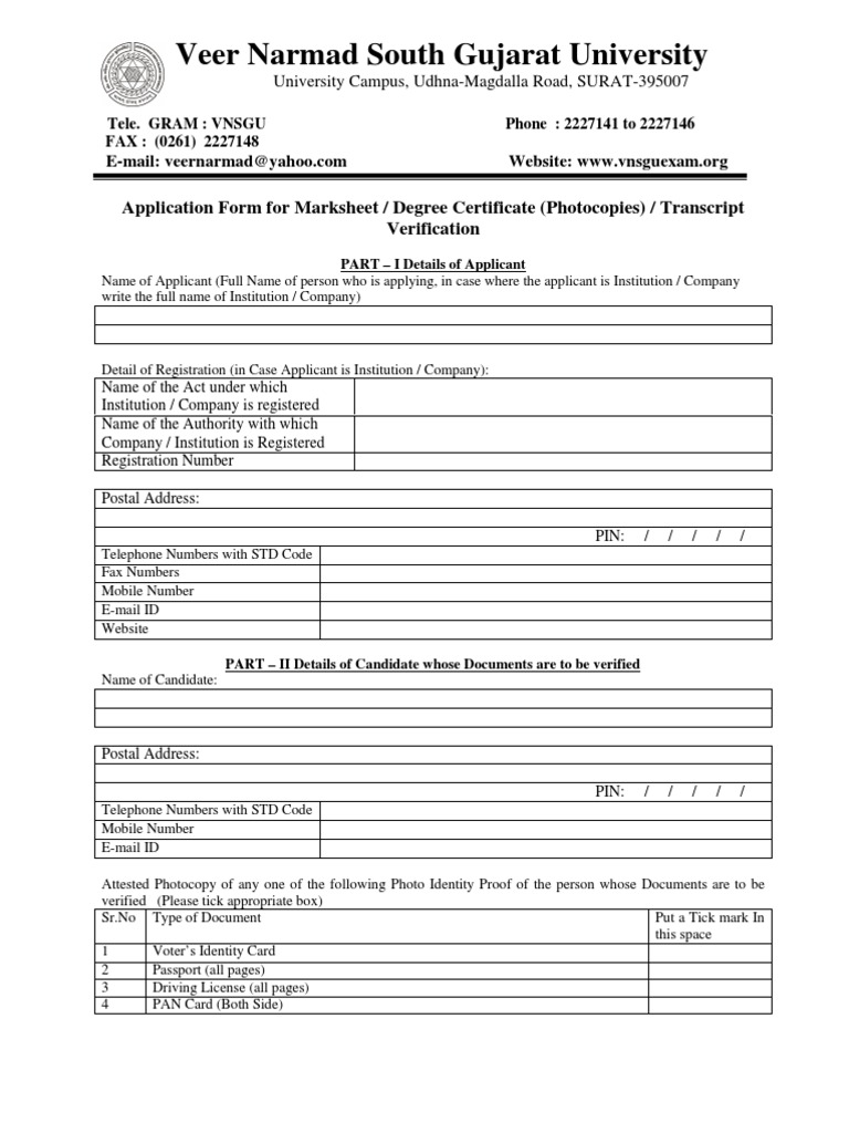 Veer narmad south gujarat university (vnsgu). • original degree is tentatively 2 months after receipt of form. Degree certificate form for calicut university. How to fill degree form of vnsgu for every program. All files must be clear and legible.